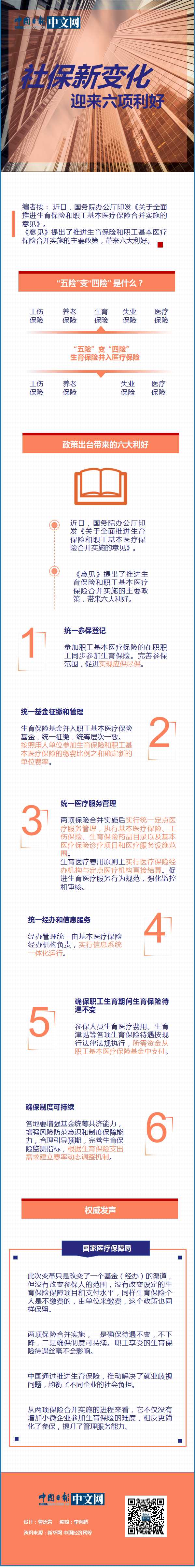 中国日报网3月28日电 近日,国务院办公厅印发《关于全面推进生育保险和职工基本医疗保险合并实施的意见》。《意见》提出了推进生育保险和职工基本医疗保险合并实施的主要政策,带来六大利好。